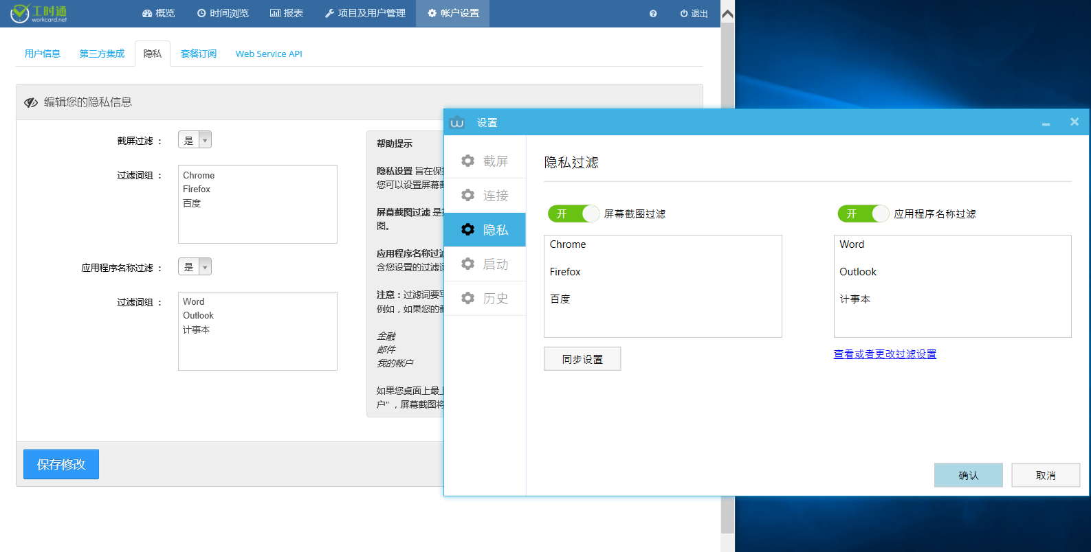 用户可以设置工时通客户端,使其在隐私模式下运行,使得上传的截图和活动记录只能自己可以看到。之后用户可以在网站中审阅截图,然后确定它们是否可以公开(也就是提交)为有效时间。